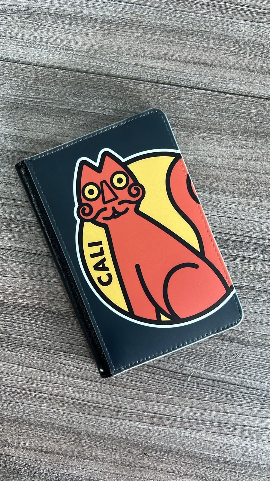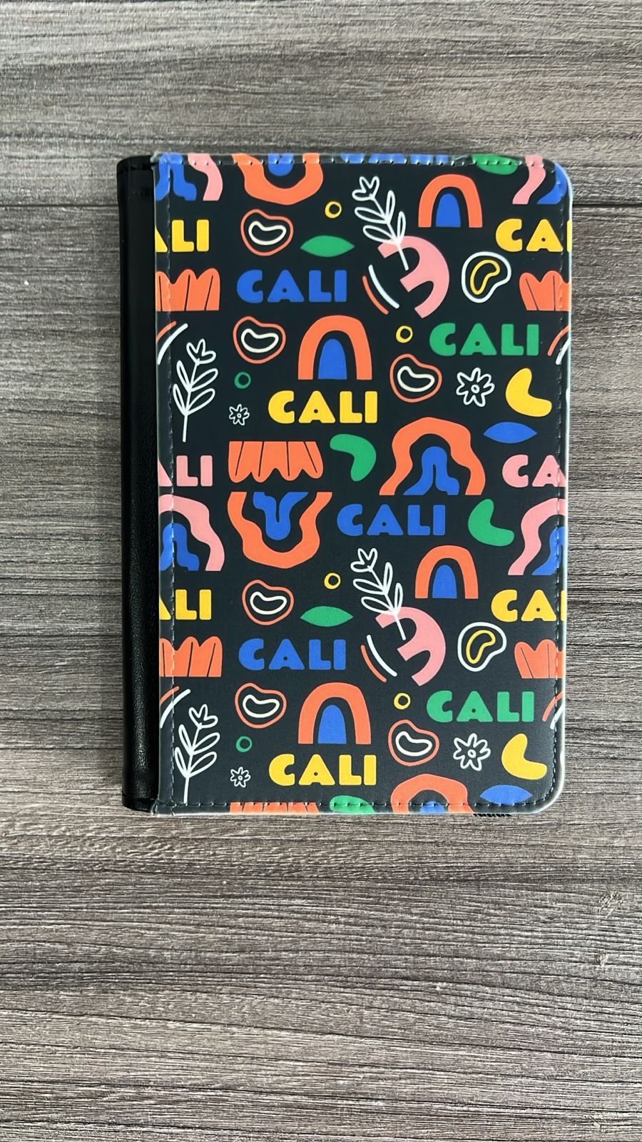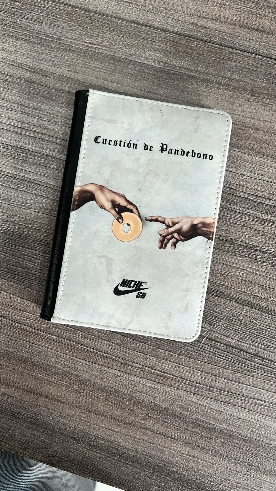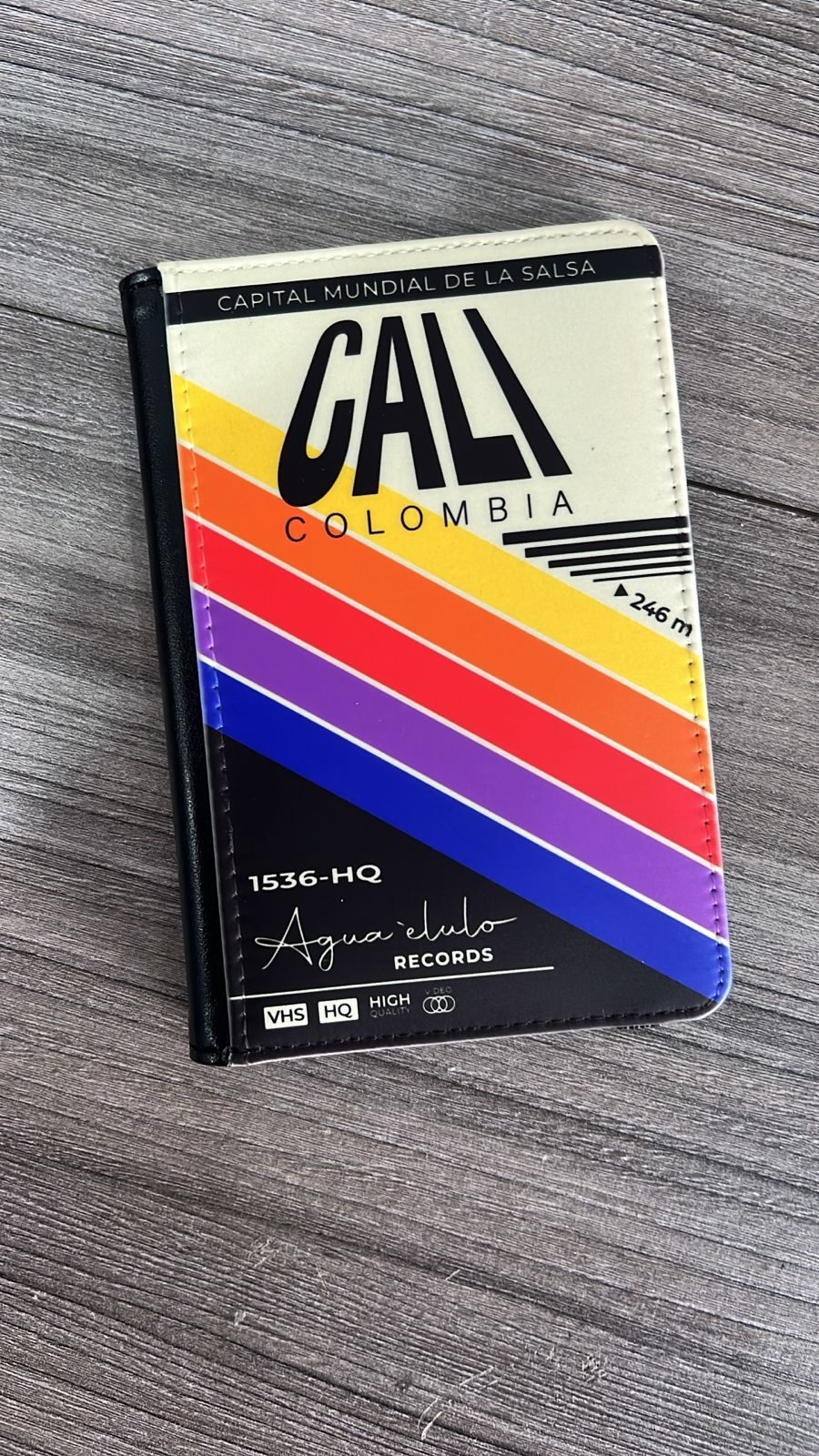 Portapasaporte en cuerina y resorte, con compartimientos internos para pasaporte y otros documentos.